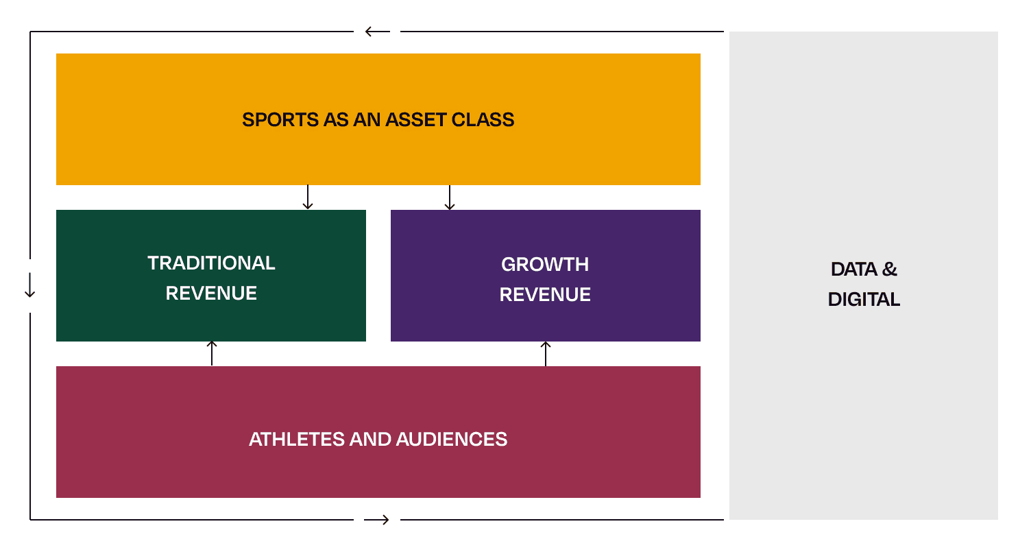 Revenue opportunities include infrastructure development, league ownership, sponsorships, and digital media rights.